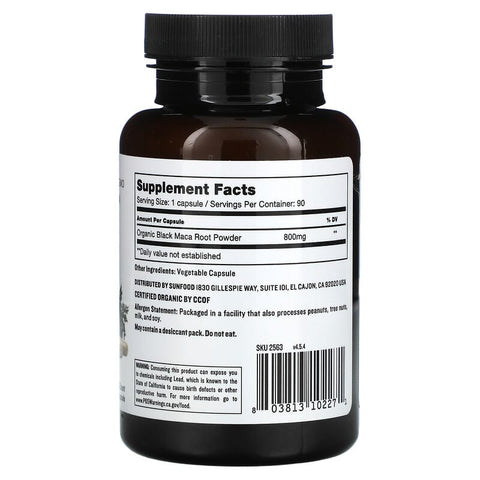 Inform when this item available: Sunfood, Black Maca, 800 mg, 90 Capsules - 90 Count / 0.13 / 0.28