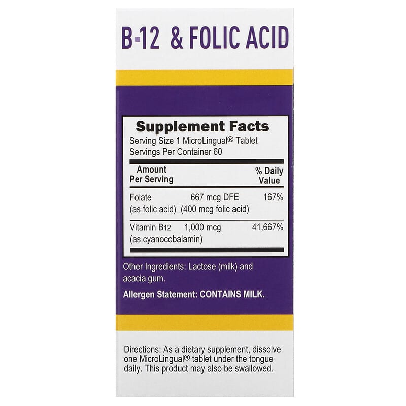 Inform when this item available: Superior Source, Cyanocobalamin B-12 & Folic Acid, 60 MicroLingual Instant Dissolve Tablets - 60 Count / 0.02 / 0.05