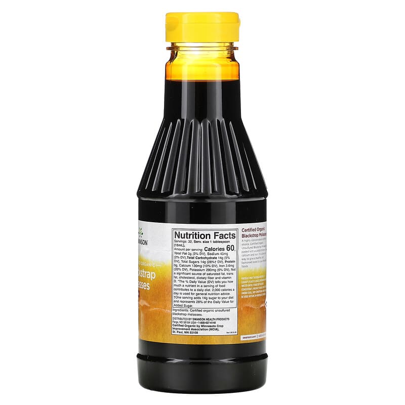 Inform when this item available: Swanson, Certified Organic Blackstrap Molasses, Unsulfured, 16 fl oz (473 ml) - 473.18 ml / 0.74 / 1.64