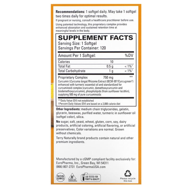 Inform when this item available: Terry Naturally, CuraMed, Superior Absorption Curcumin, 750 mg, 120 Softgels - 120 Count / 0.25 / 0.55