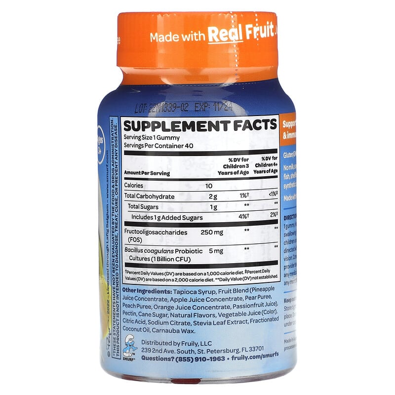 Inform when this item available: The Smurfs, Kids Gummy, Digestive Probiotic, Ages 3+, Smurf Berry, 40 Gummies - 40 Count / 0.17 / 0.38