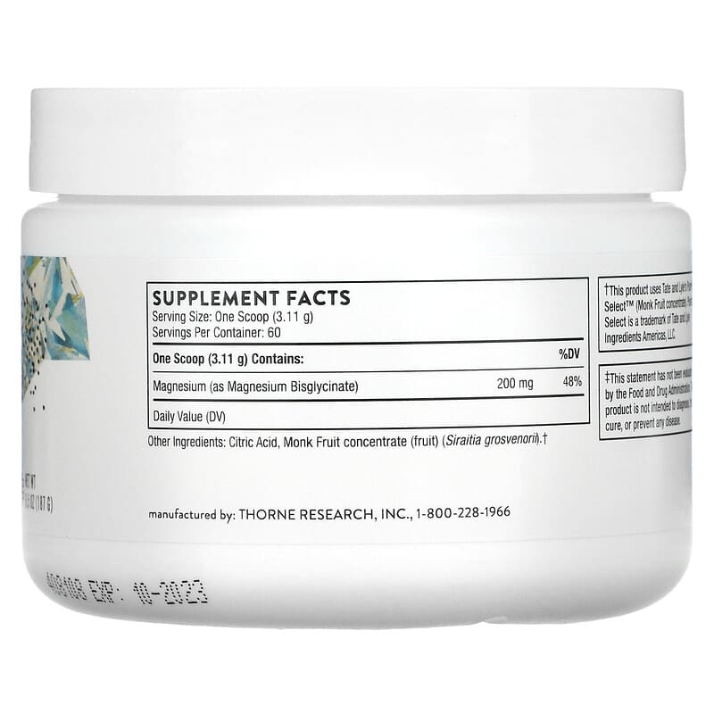 Inform when this item available: Thorne, Magnesium Bisglycinate, 6.5 oz (187 g) - 184.27 g / 0.24 / 0.522