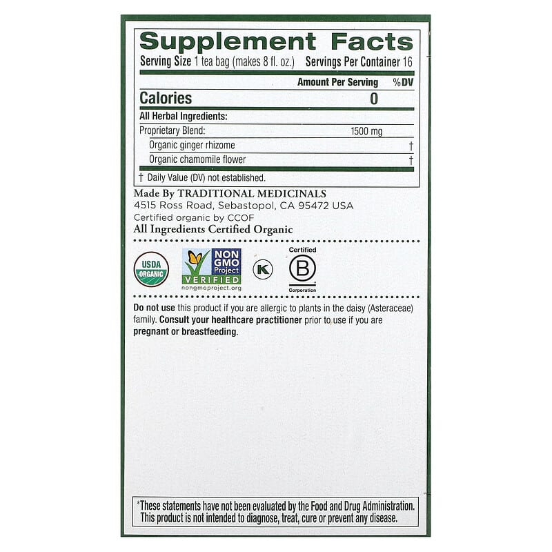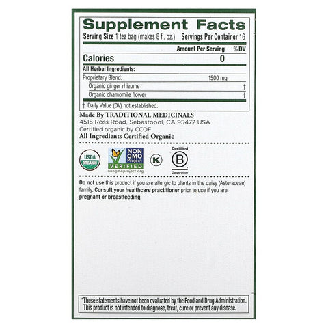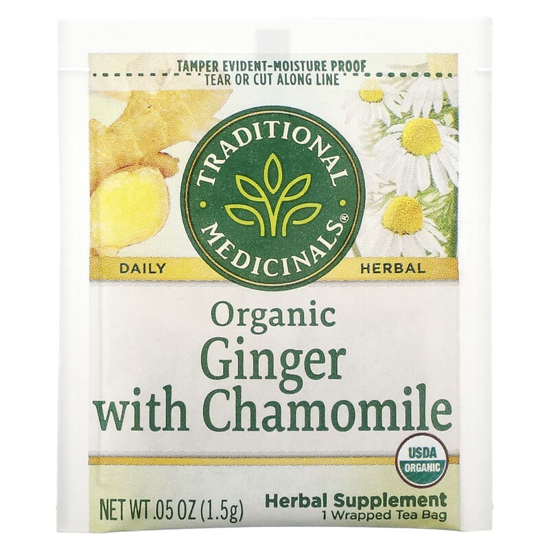 Traditional Medicinals, Herbal Teas, Organic Ginger with Chamomile, Caffeine Free, 16 Wrapped Tea Bags, 0.85 oz (24 g) - 16 Count / 0.06 / 0.135