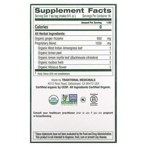 Inform when this item available: Traditional Medicinals, Herbal Teas, Organic Lemon Ginger, Caffeine Free, 16 Wrapped Tea Bags, 1.13 oz (32 g) - 16 Count / 0.07 / 0.16