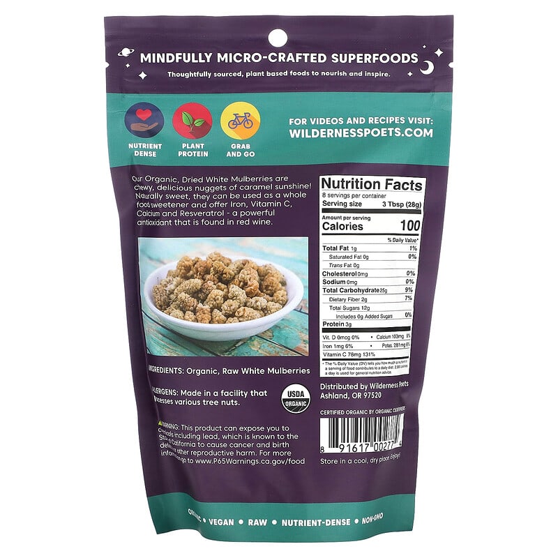 Inform when this item available: Wilderness Poets, Organic White Mulberries, 8 oz (226 g) - 226.8 g / 0.23 / 0.5