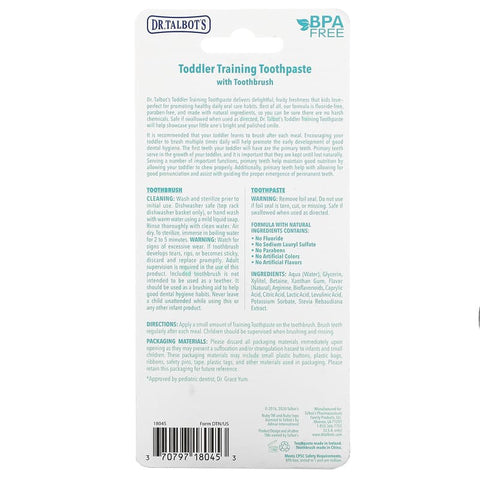 Dr. Talbot's, Toddler Training Toothpaste with Toothbrush, 6 m+, Tutti Frutti, 2 Piece Set - 2 Count / 0.08 / 0.185