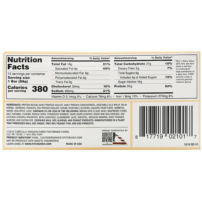 FITCRUNCH, Whey Protein Baked Bar, Peanut Butter and Jelly, 12 Bars, 3.10 oz (88 g) Each Sale