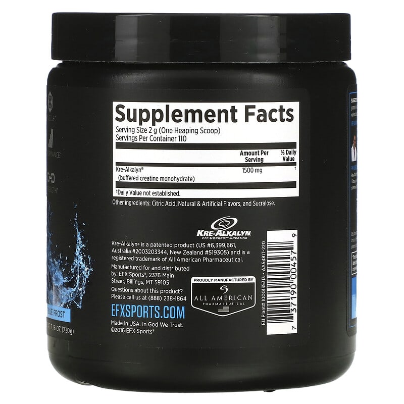 EFX Sports, Kre-Alkalyn EFX Powder, Blue Frost, 7.76 oz (220 g) - 219.99 g / 0.28 / 0.625
