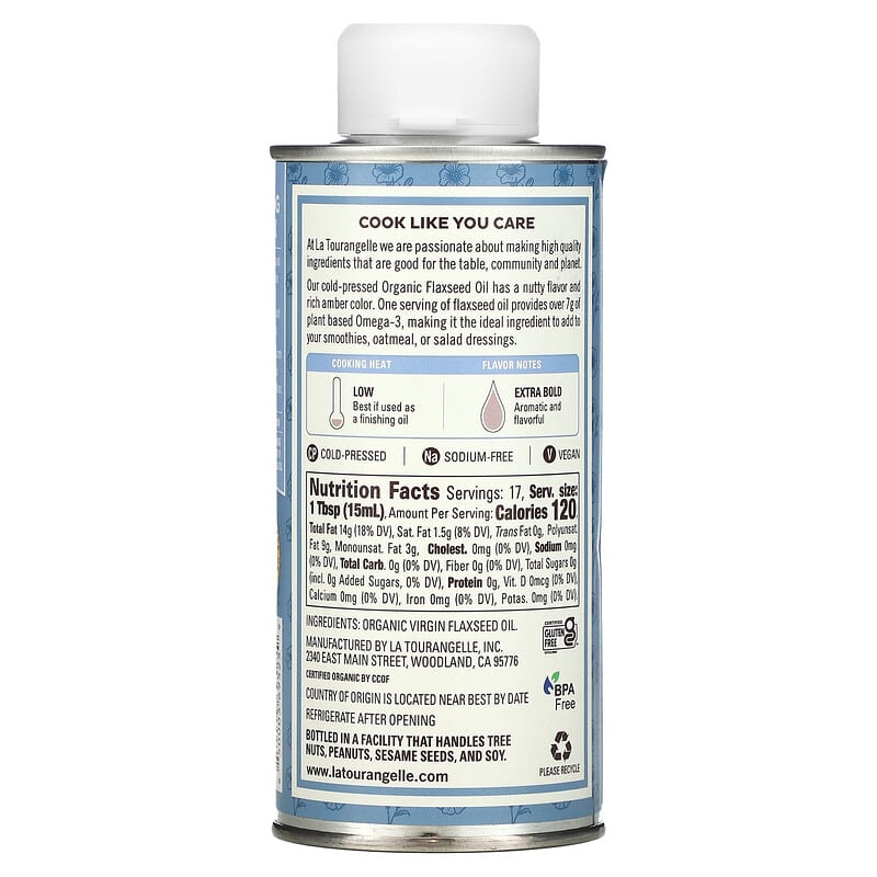 La Tourangelle, Organic Flaxseed Oil, 8.45 fl oz (250 ml) - 249.9 ml / 0.29 / 0.65