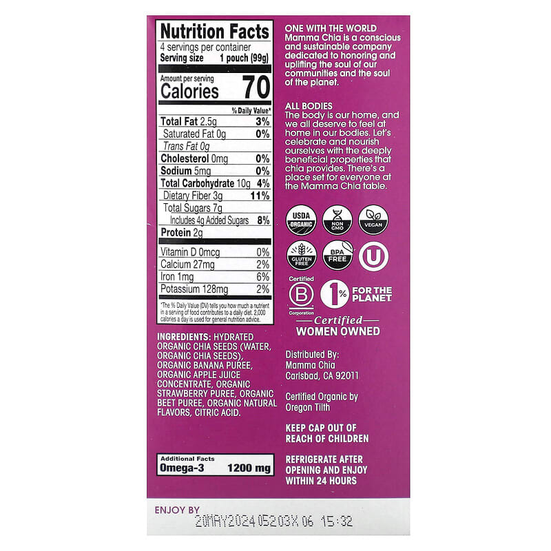 Mamma Chia, Organic Chia Squeeze Vitality Snack, Strawberry Banana, 4 Pack, 3.5 oz (99 g) Each Sale
