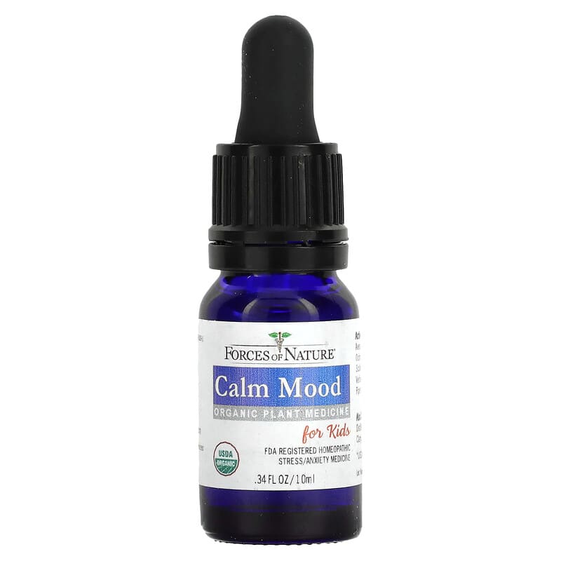 Forces of Nature, Calm Mood, Organic Plant Medicine, For Kids Ages 3-12, Fruit Flavor, 0.34 fl oz (10 ml) - 10.05 ml / 0.05 / 0.1