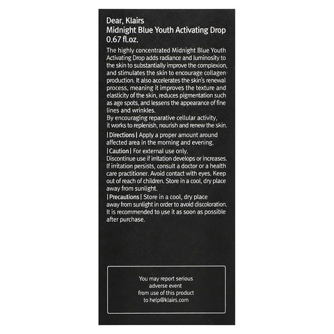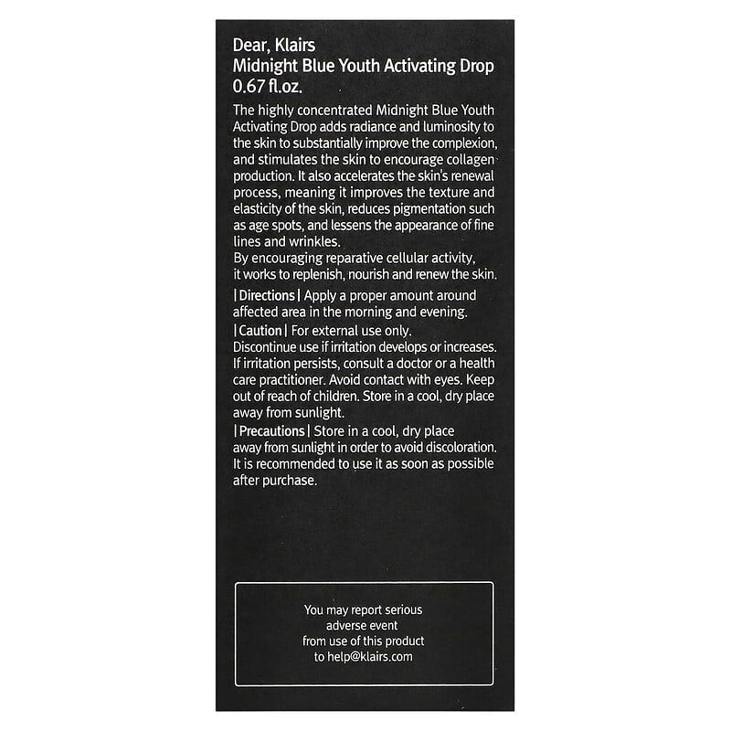 Inform when this item available: Dear, Klairs, Midnight Blue Youth Activating Drop, 0.67 fl oz (20 ml) - 19.81 ml / 0.07 / 0.15