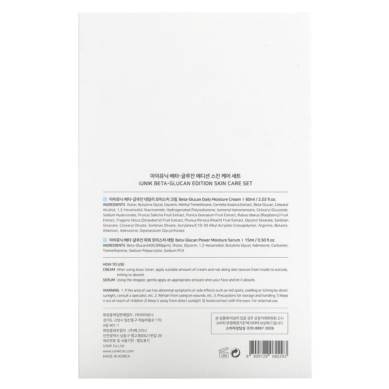 iUNIK, Beta-Glucan Edition Skin Care Set, Cream & Mini Serum, 2 Piece Set Sale