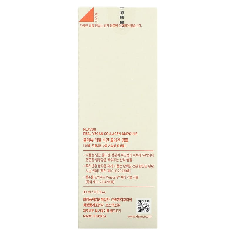 Inform when this item available: KLAVUU, Real Vegan Collagen Ampoule, 1.01 fl oz (30 ml) - 29.87 ml / 0.16 / 0.35