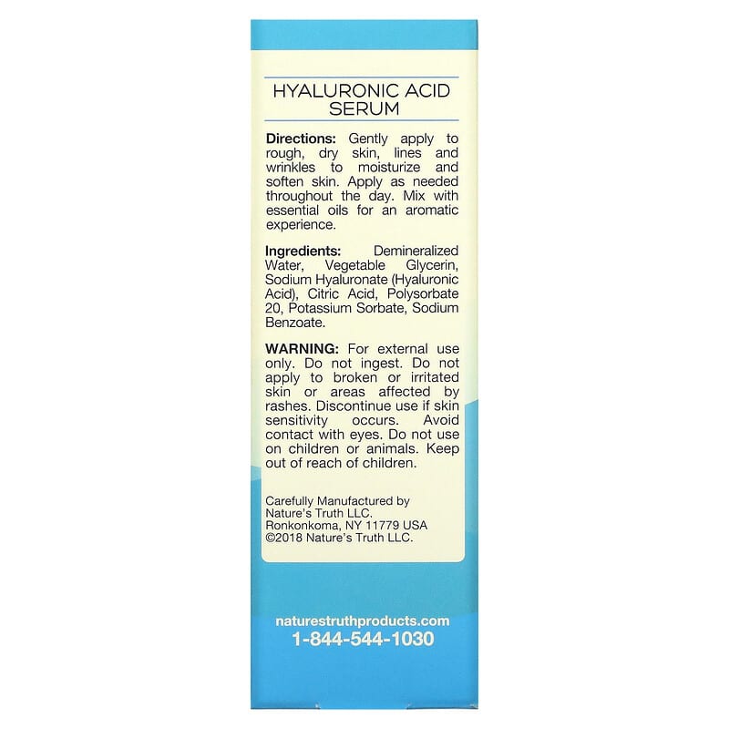 Inform when this item available: Nature's Truth, Hyaluronic Acid Serum, Unscented, 1 fl oz (30 ml) - 29.57 ml / 0.1 / 0.22