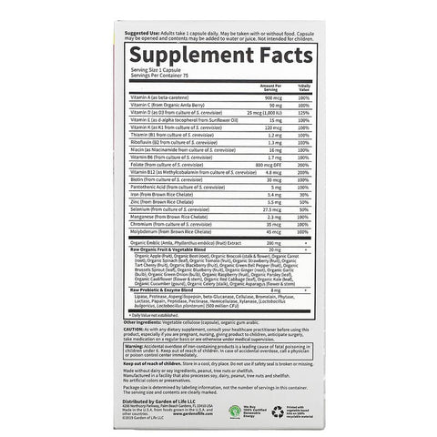 Inform when this item available: Garden of Life, Vitamin Code®, RAW One, Once Daily Multivitamin For Women, 75 Vegetarian Capsules - 75 Count / 0.31 / 0.684