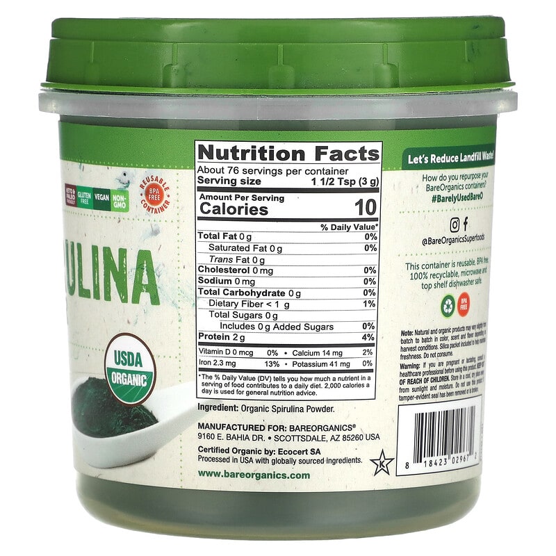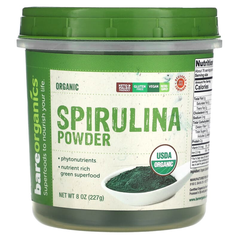 Inform when this item available: BareOrganics, Organic Spirulina Powder , 8 oz (227 g) - 226.8 g / 0.32 / 0.7