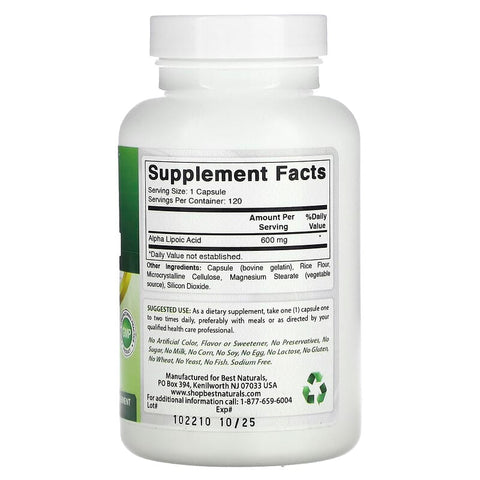 Best Naturals, Alpha Lipoic Acid, 600 mg, 120 Capsules - 120 Count / 0.11 / 0.25