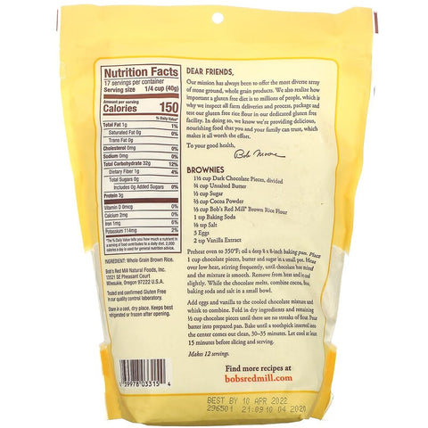 Inform when this item available: Bob's Red Mill, Brown Rice Flour, Whole Grain, 24 oz (680 g) - 680.39 g / 0.7 / 1.54