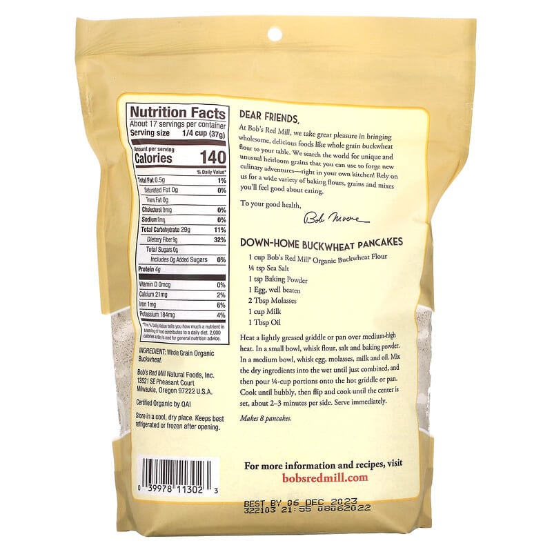 Inform when this item available: Bob's Red Mill, Organic Buckwheat Flour, Whole Grain, 22 oz (624 g) - 623.69 g / 0.63 / 1.392