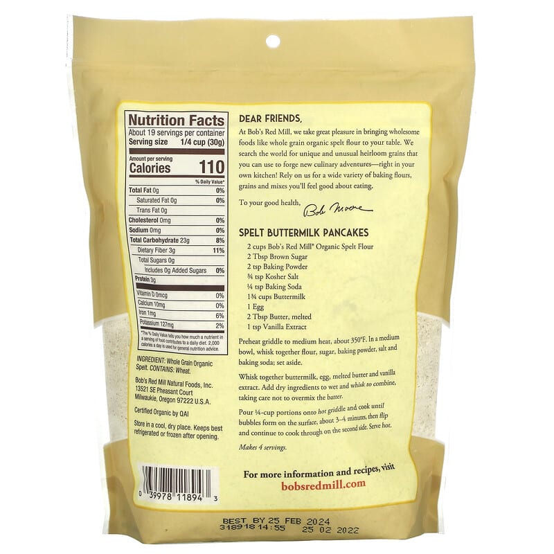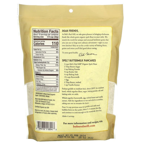 Inform when this item available: Bob's Red Mill, Organic Spelt Flour, Whole Grain, 20 oz (567 g) - 566.99 g / 0.59 / 1.3