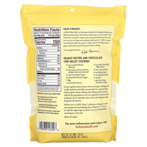 Inform when this item available: Bob's Red Mill, Stone Ground Millet Flour, Whole Grain, 20 oz (567 g) - 566.99 g / 0.58 / 1.27