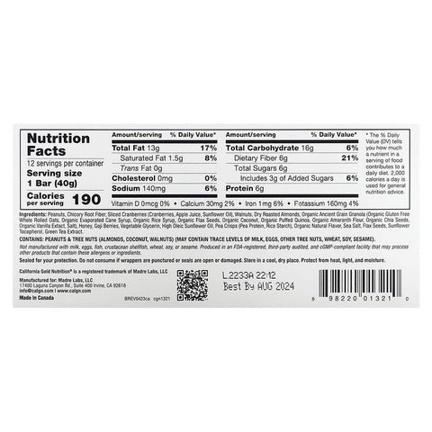 Inform when this item available: California Gold Nutrition, Foods, Cranberry & Almond Chewy Granola Bars, 12 Bars, 1.4 oz (40 g) Each - 12 Count / 0.59 / 1.3