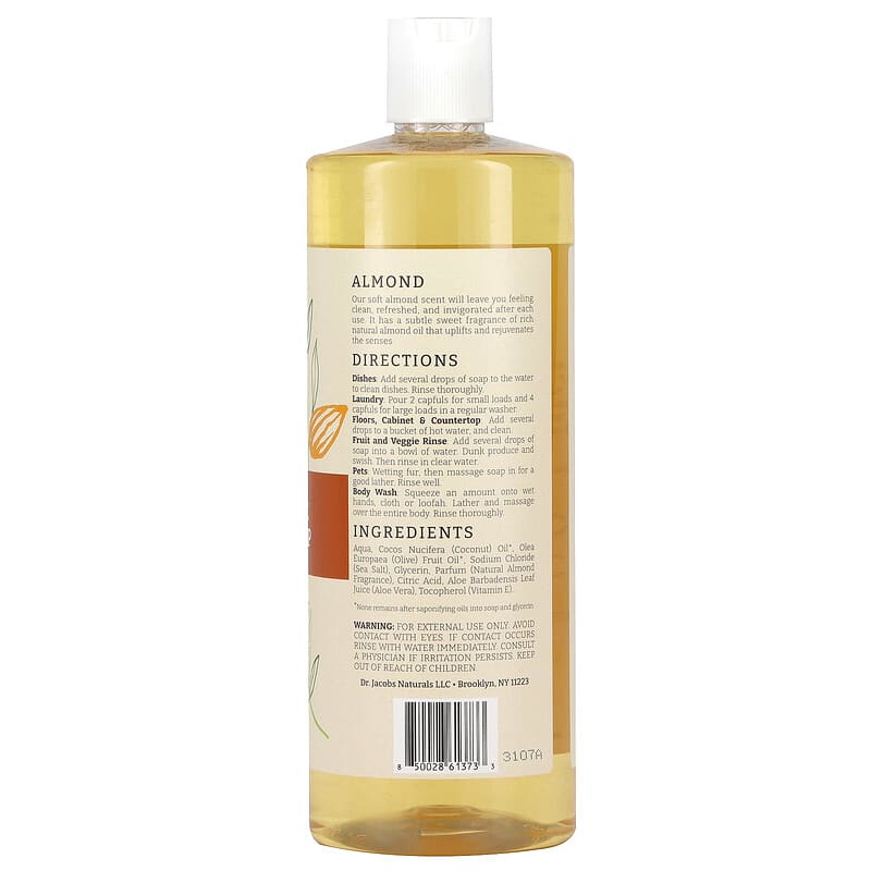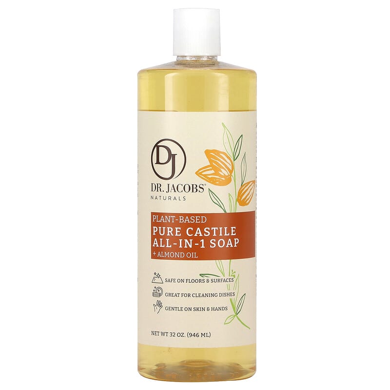 Dr. Jacobs Naturals, Plant-Based Pure Castile All-In-1 Soap, Almond Oil, 32 oz (946 ml) - 907.18 g / 1.02 / 2.25