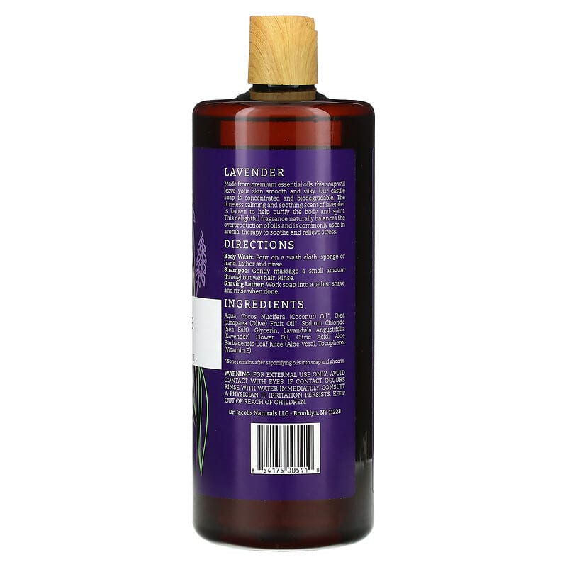 Dr. Jacobs Naturals, Plant-Based Rich Castile Body Wash, Lavender Essential Oil, 32 oz (946 ml) - 907.18 g / 1.02 / 2.25