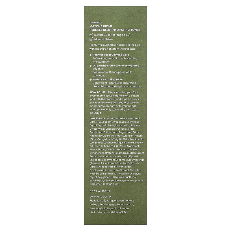 Inform when this item available: Heimish, Matcha Biome, Redness Relief Hydrating Toner, 5.07 fl oz (150 ml) - 149.94 ml / 0.26 / 0.575