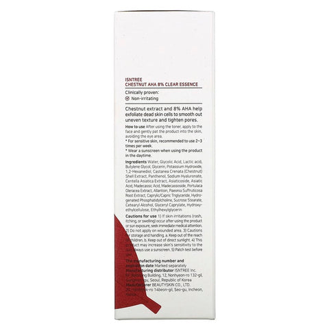 Inform when this item available: ISNtree, Chestnut AHA 8% Clear Essence, Normal & Dry Skin, 3.38 fl oz (100 ml) - 99.96 ml / 0.14 / 0.315