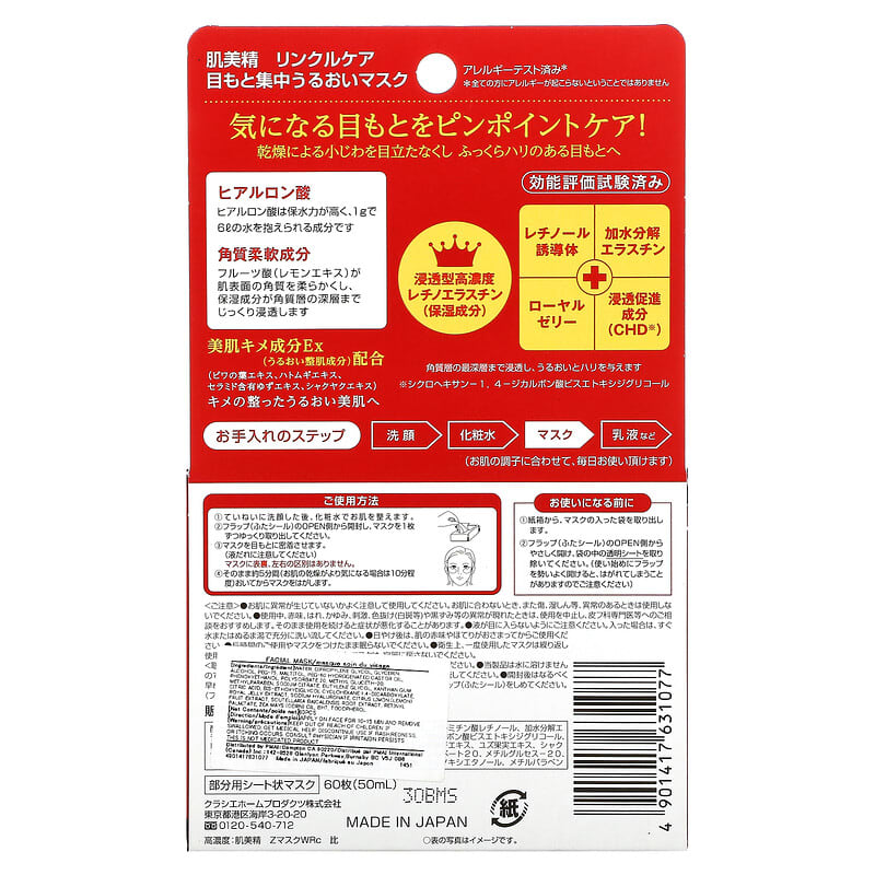Inform when this item available: Kracie, Hadabisei, Eye Zone Mask, Wrinkle Care, 60 Pieces - 60 Count / 0.09 / 0.2