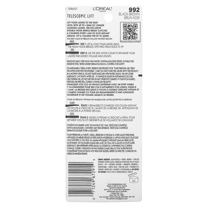 Inform when this item available: L'Or?al, Telescopic Lift Mascara, 992 Black Brown, 0.33 fl oz (10 ml) - 9.76 ml / 0.02 / 0.05