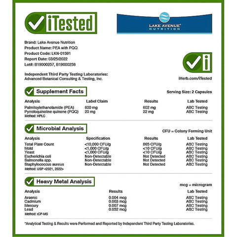 Inform when this item available: Lake Avenue Nutrition, PEA 300 mg + PQQ 10 mg, 30 Veggie Capsules - 30 Count / 0.03 / 0.075