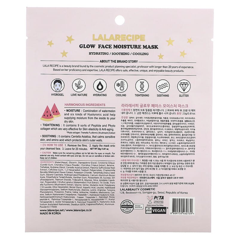 Inform when this item available: Lalarecipe, Glow Face Moisture Beauty Mask, 1 Sheet Mask, 0.81 oz (23 g) - 1 Count / 0.02 / 0.05
