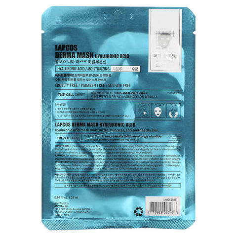 Inform when this item available: Lapcos, Hyaluronic Beauty Sheet Mask, Moisturizing, 1 Sheet, 0.84 fl oz (25 ml) - 24.84 ml / 0.03 / 0.07
