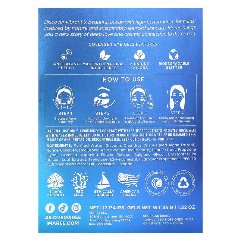 Inform when this item available: Maree, Marine Collagen Eye Gels, 12 Pairs, 1.32 oz (36 g) - 12 Count / 0.16 / 0.35