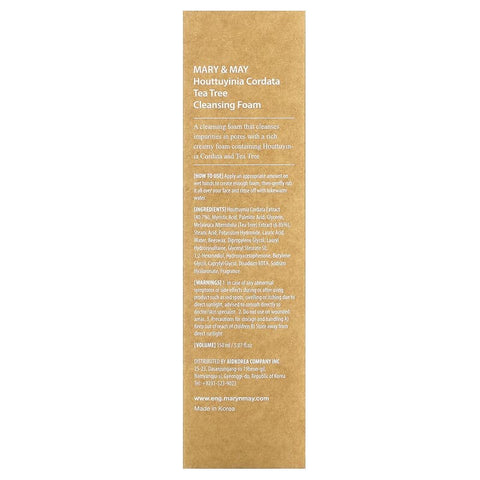 Inform when this item available: Mary & May, Houttuynia Cordata + Tea Tree, Cleansing Foam, 5.07 fl oz (150 ml) - 149.94 ml / 0.18 / 0.4