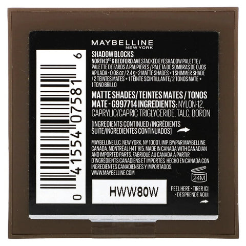 Inform when this item available: Maybelline, Shadow Blocks, 30 North 3rd & Bedford Ave, 0.08 oz (2.4 g) - 2.27 g / 0.02 / 0.05