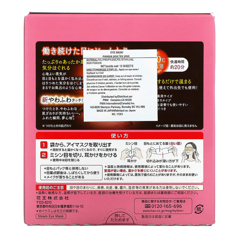 Inform when this item available: Megrhythm, Kao, Gentle Steam Eye Mask, Fragrance Free, 12 Sheets - 12 Count / 0.16 / 0.35