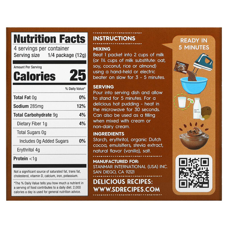 Inform when this item available: Natural Simply Delish, Plant-Based Instant Pudding, Chocolate, Sugar Free, 1.7 oz (48 g) - 48.19 g / 0.06 / 0.134