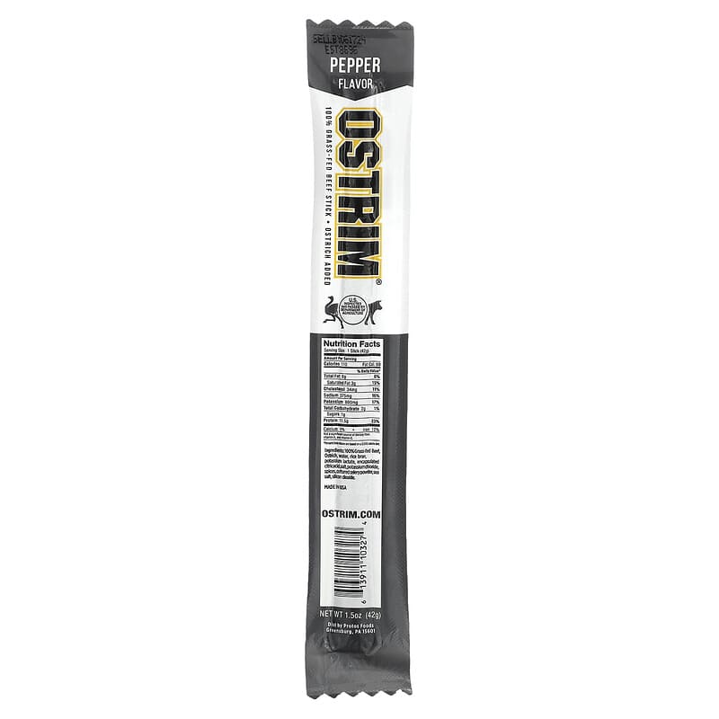 Inform when this item available: Ostrim, Beef & Ostrich Stick, Pepper, 1 Stick, 1.5 oz (42 g) - 42.52 g / 0.05 / 0.1