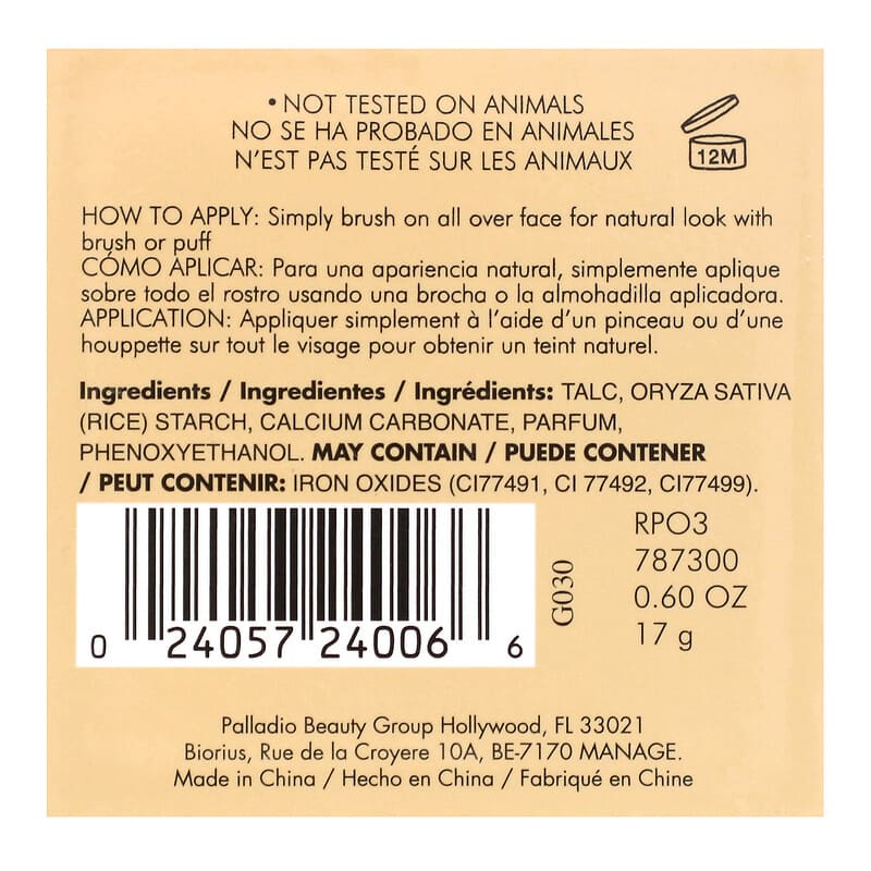 Inform when this item available: Palladio, Rice Powder, Natural RPO3, 0.60 oz (17 g) - 1.7 g / 0.05 / 0.1