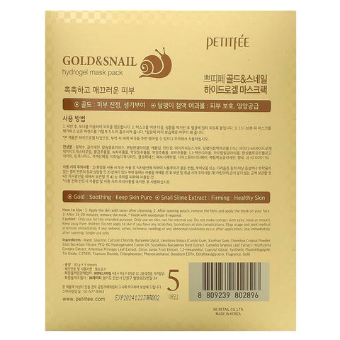Inform when this item available: Petitfee, Gold & Snail Hydrogel Beauty Mask Pack, 5 Sheets, 1.05 oz (30 g) Each - 5 Count / 0.27 / 0.6