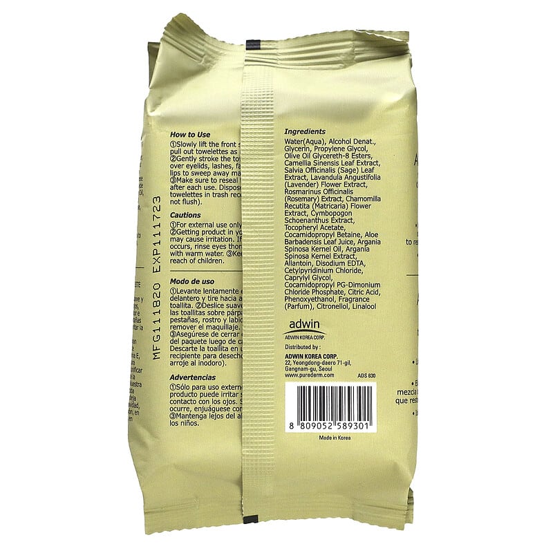 Inform when this item available: Purederm, Make-Up Remover Cleansing Towelettes, Argan Oil, 30 Wet Towelettes - 30 Count / 0.2 / 0.45