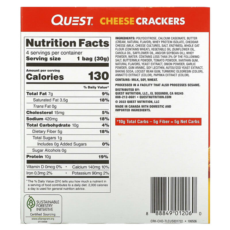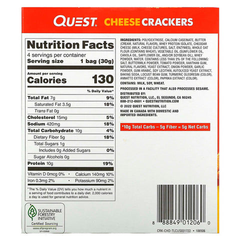 Inform when this item available: Quest Nutrition, Cheese Crackers, Cheddar Blast, 4 Bags, 1.06 oz (30 g) Each - 4 Count / 0.18 / 0.405