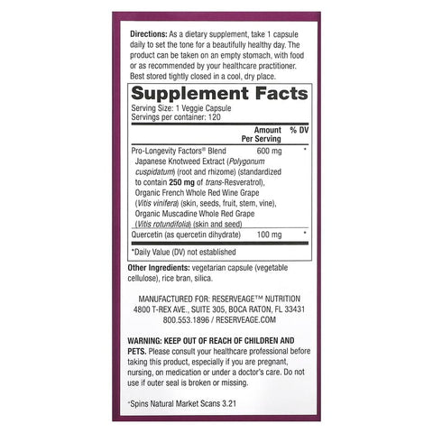 Reserveage Beauty, Resveratrol, 250 mg, 120 Veggie Capsules Sale