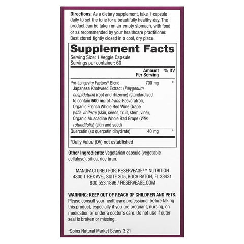 Inform when this item available: Reserveage Beauty, Resveratrol, 60 Veggie Capsules - 60 Count / 0.11 / 0.25