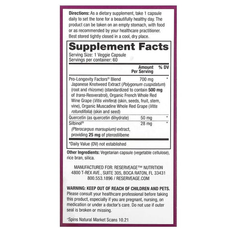 Inform when this item available: Reserveage Beauty, Resveratrol with Pterostilbene , 500 mg, 60 Veggie Capsules - 60 Count / 0.11 / 0.25