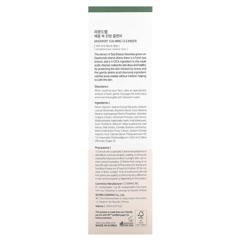 Inform when this item available: Round Lab, Mugwort Calming Cleanser, 5.07 fl oz (150 ml) - 149.94 ml / 0.2 / 0.45